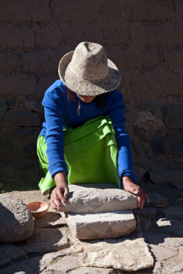 - Bäuerin beim Mehlmahlen (Atuncalla, Peru)
